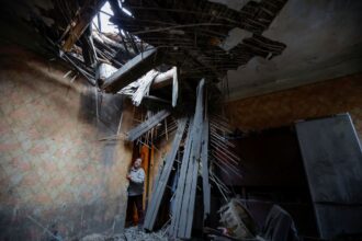 A woman looks inside a damaged house hit by recent shelling in Donetsk, Ukraine, on Tuesday. Alexander Ermochenko/Reuters…