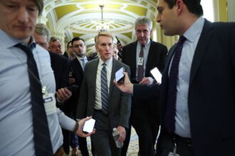Sen. James Lankford talks to reporters as he makes his way to a meeting at the US Capitol on February…