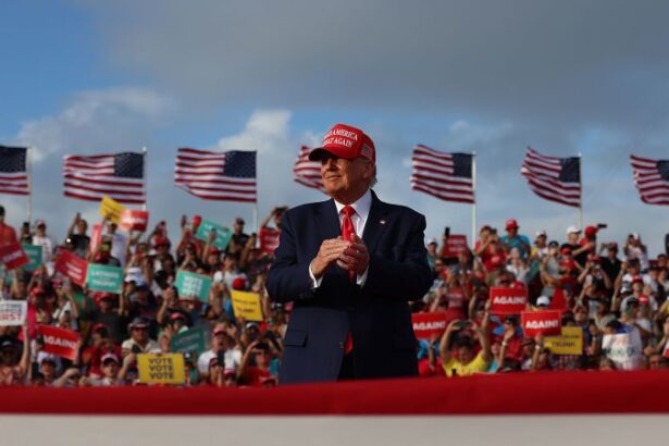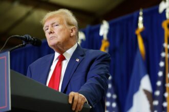Former President Donald Trump speaks at a campaign rally on January 5, 2024 in Mason City, Iowa. Anna Moneymaker/Getty Images…