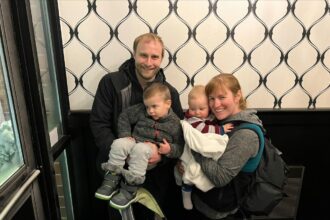 Nathan and Olivia Becker pose for a photo with their children in Iowa. Arit John/CNN Nathan and Olivia Becker of…