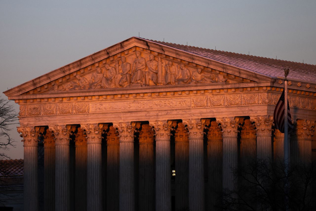 The sun illuminates the Supreme Court in Washington, DC, on January 17.